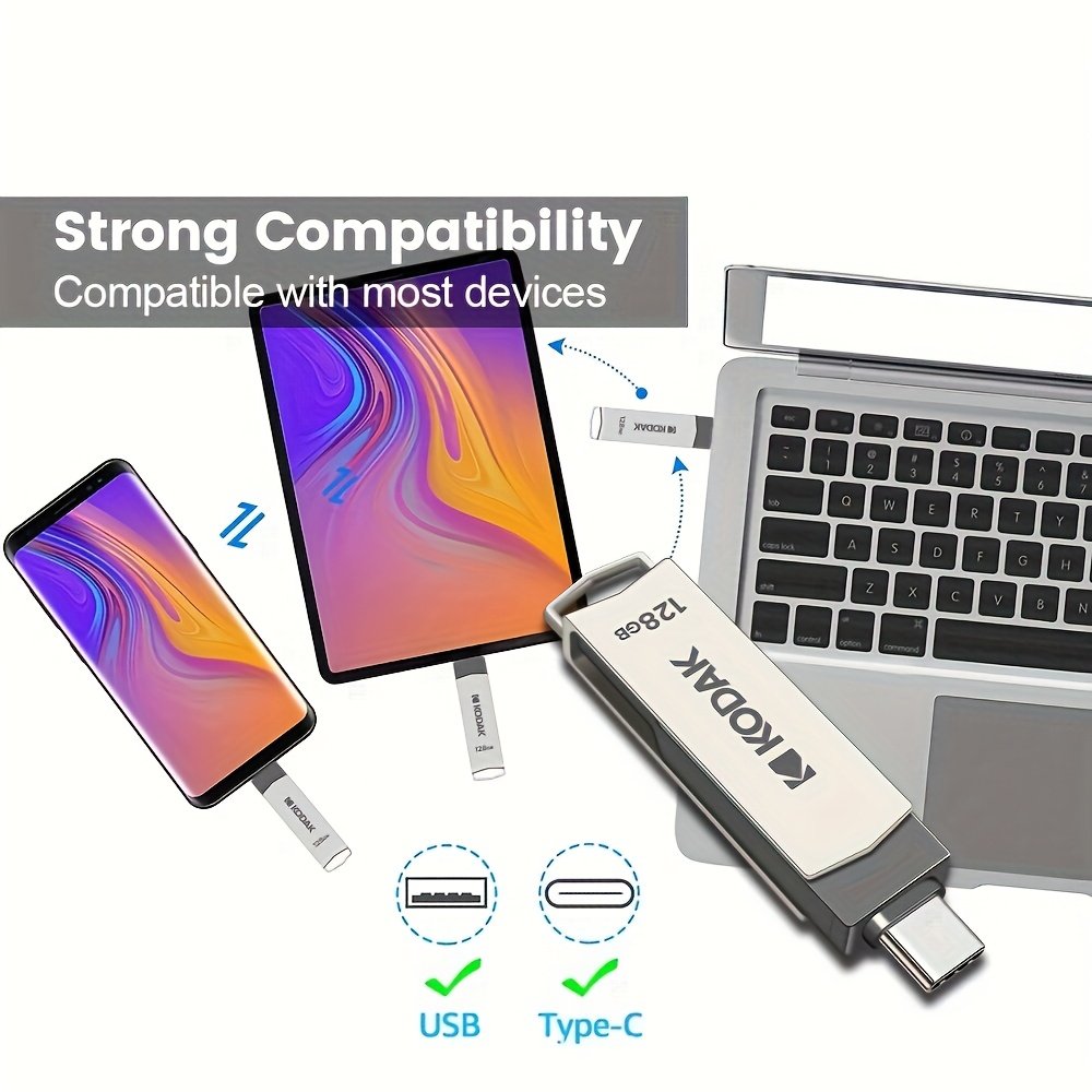 High-Speed USB 3.2: Experience fast data transfer with the high-speed USB 3.2 interface of the USB 3.2 Type-C flash drive, ensuring efficient file management and rapid backup• Large storage capacity: This USB drive offers options of 32GB, 128GB, and 256GB, providing ample space for storing photos, videos, documents, and more• Multi-functional Compatibility: This metal body drive is designed for broad compatibility, making it ideal for use with smartphones, laptops, and creative projects• Dual-storage design: This flash drive’s dual-storage design enables seamless data transfer and storage, enhancing your work efficiency and productivity• Compact and Portable: Its small and lightweight design makes this USB flash drive easy to carry, perfect for on-the-go use